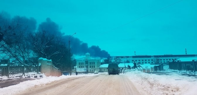 Як повідомляють місцеві ЗМІ, дим стелиться всім містом – зокрема, його навіть видно із Центральної площі та площі Філармонії.
