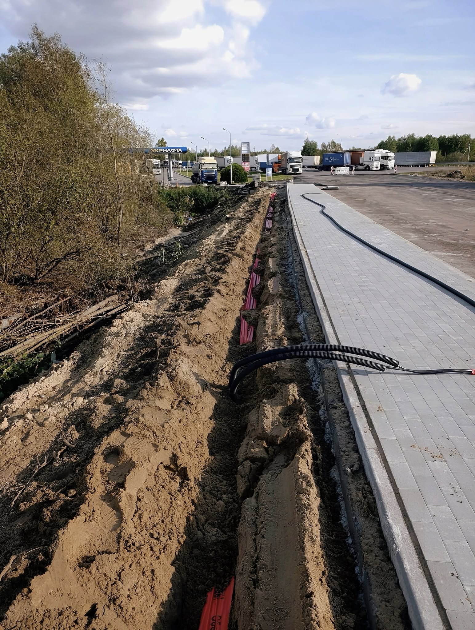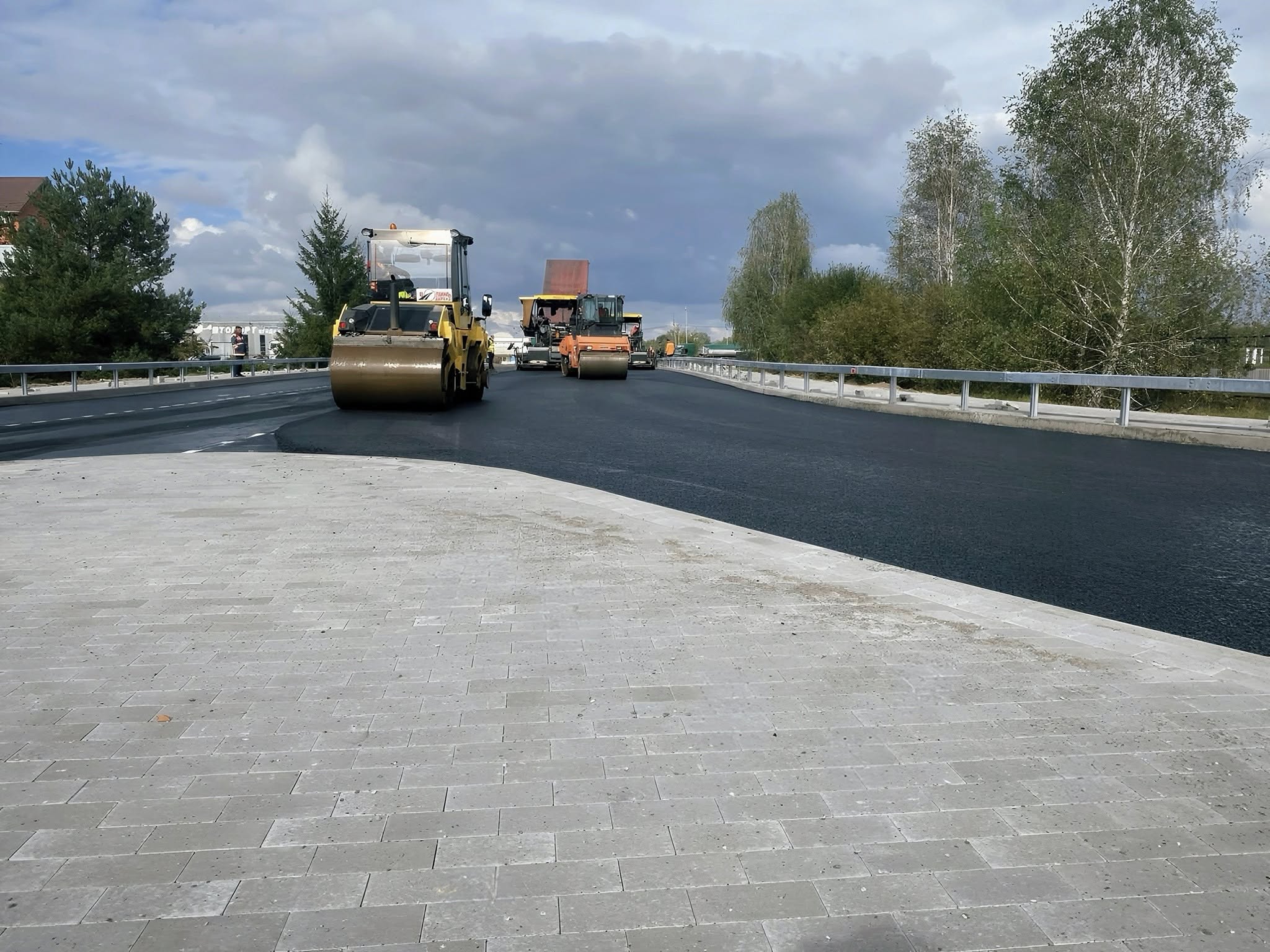 Водночас дорожники виконують роботи зі встановлення бар’єрного огородження, прокладання ліній зовнішнього освітлення, влаштування тротуару, елементів системи водовідведення та земляні роботи.