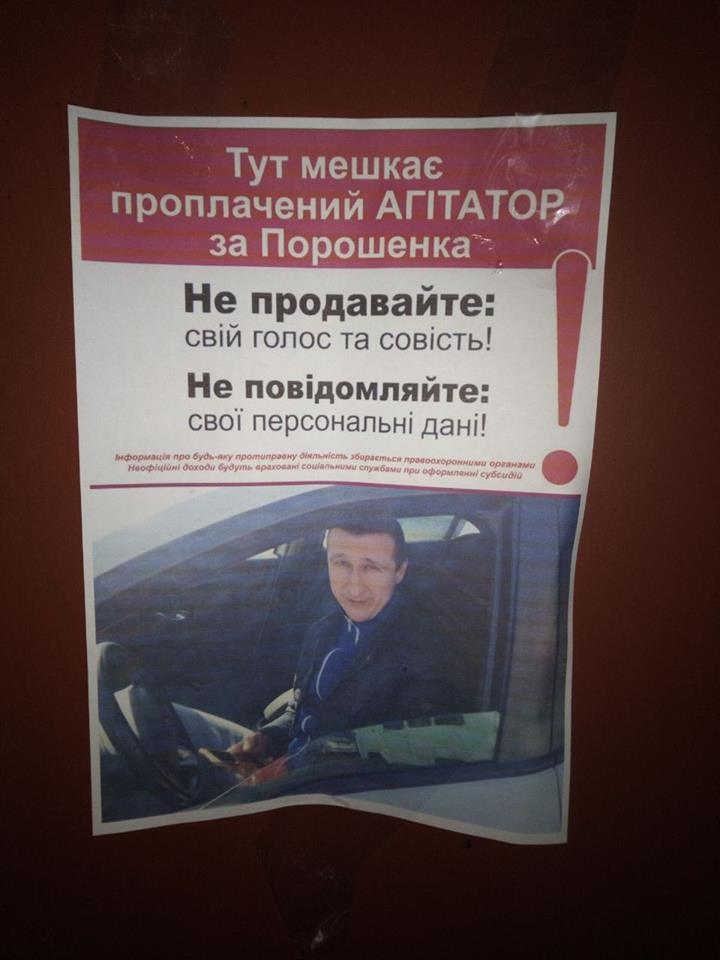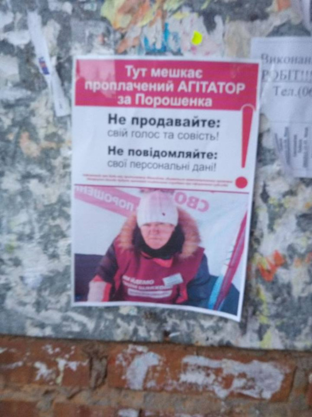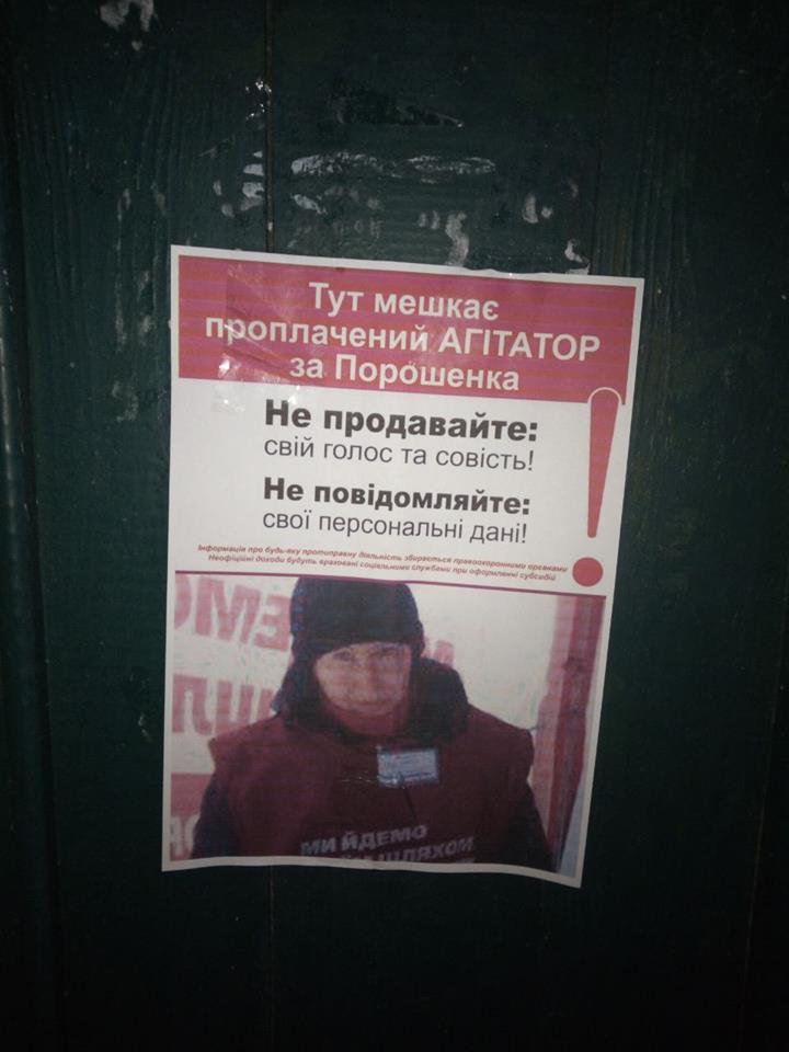 У Прилуках на під'їздах будинків розклеїли листівки з іменами проплачених агітаторів Порошенка