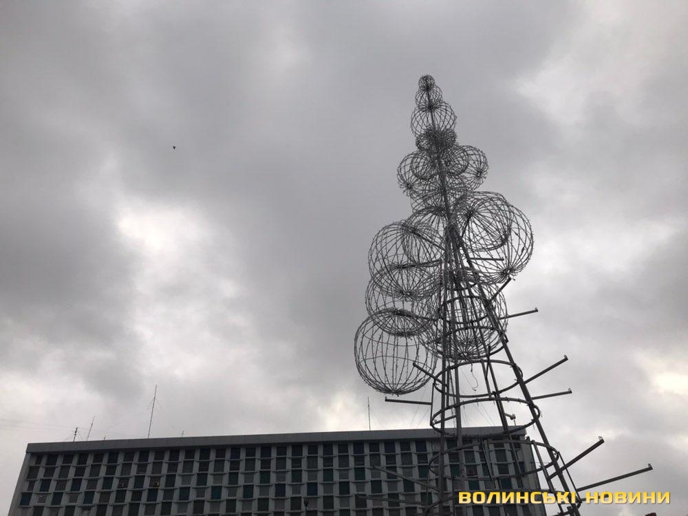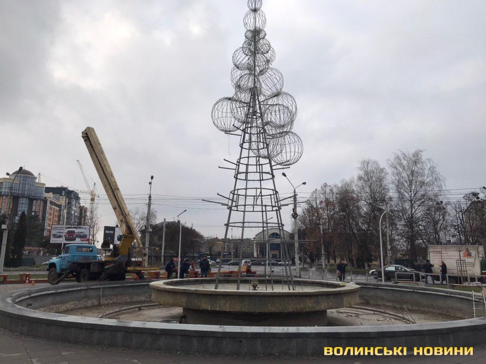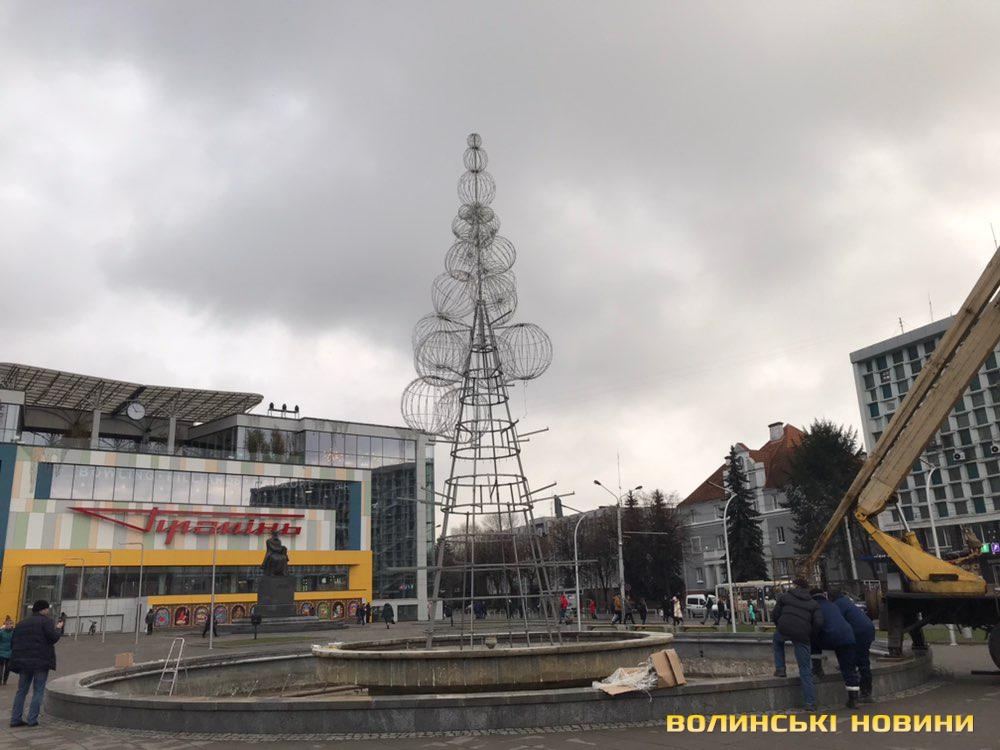 На площі Грушевського у Луцьку встановлюють оригінальну ялинку