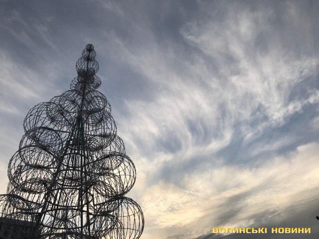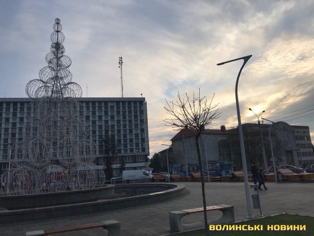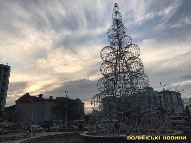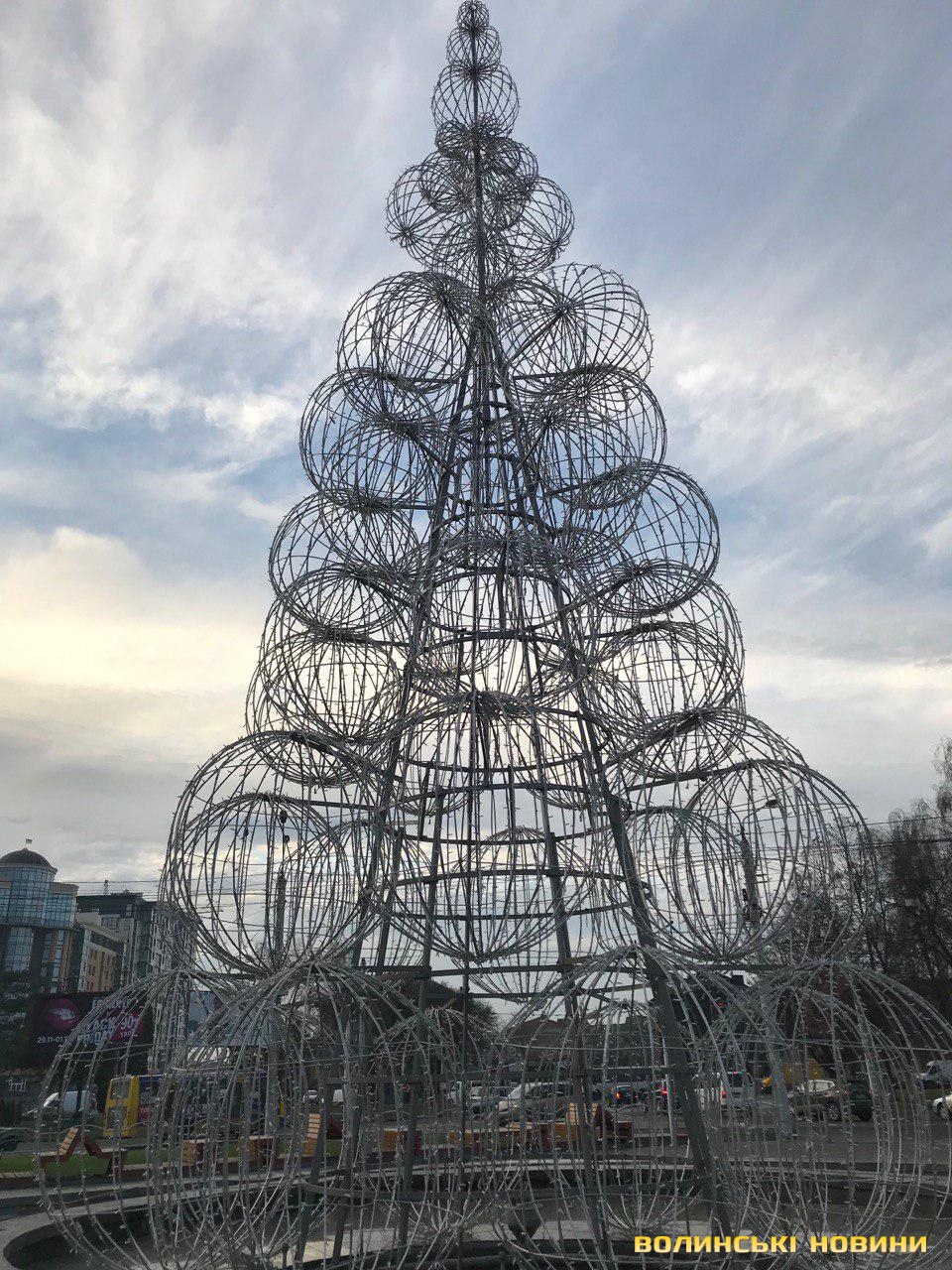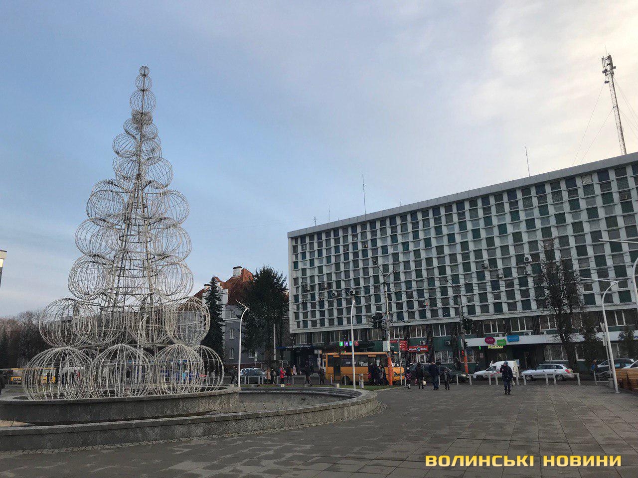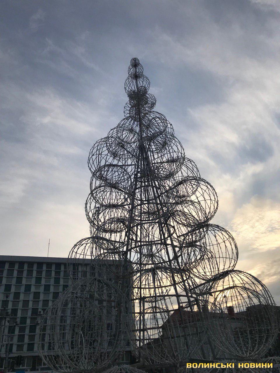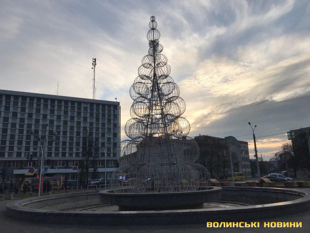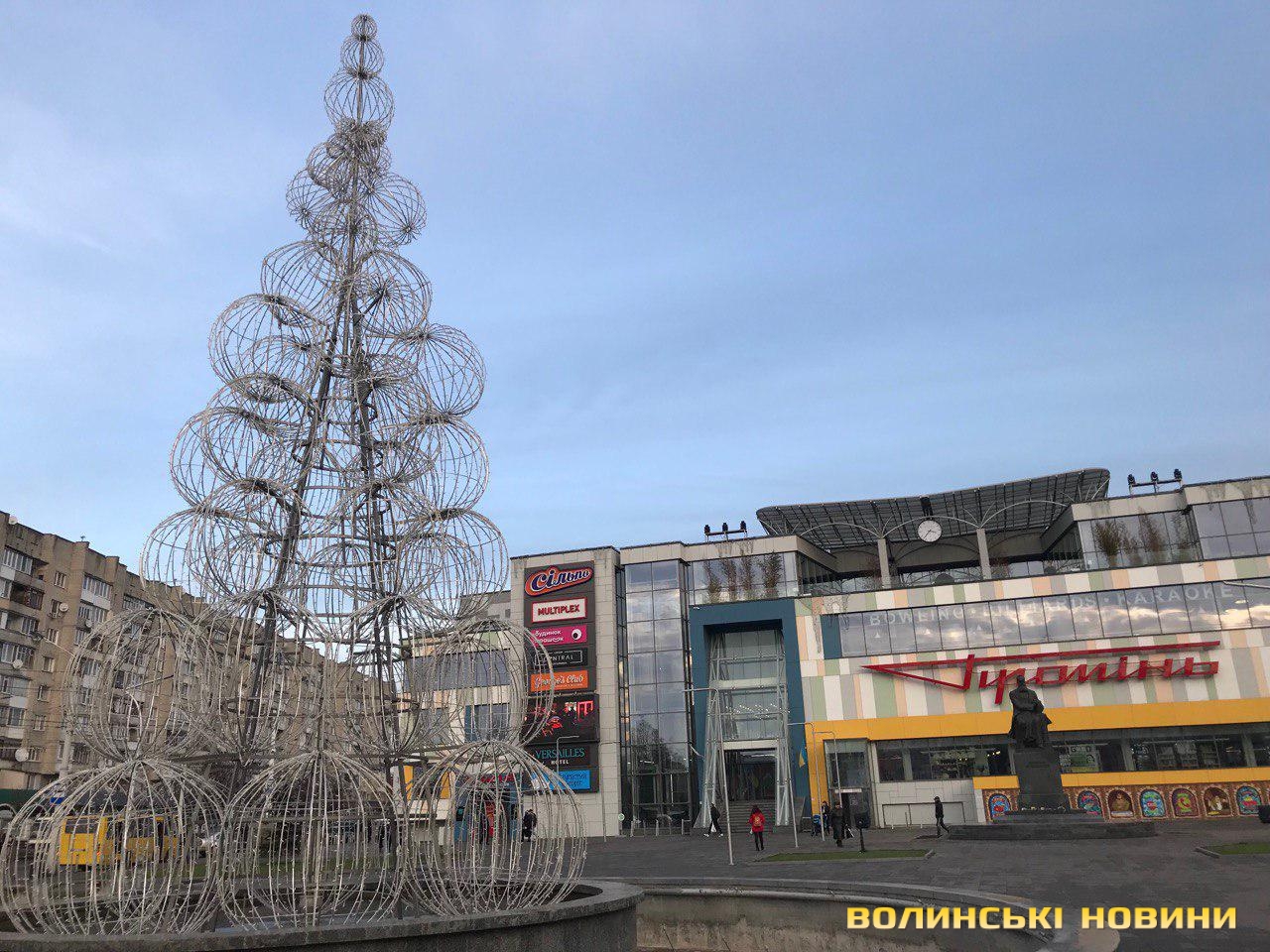 На площі Грушевського в Луцьку встановили кулясту ялинку