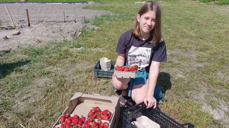 «Спочатку зацікавилися лохиною. Коли побачили, що вона така велика, то посадили її вдома, це був 2016 рік. Далі спробували полуницю, теж з малих об’ємів, буквально дві сотки вдома. Почало виходити, вирішили трохи збільшити. Чим полуниця краща – якщо ти садиш, то вже на другий рік можна отримати врожай», – сказав чоловік.Щоб мати гарний врожай полуниці, їй потрібний відповідний догляд. Для цього, каже фермер, треба докласти чимало зусиль: прополювати, встеляти солому між рядками, підживлювати рослинки й стежити, щоб не було шкідників.«Велика перешкода – погода. Дощі, багато ягід загнивають, цвіль кидається туди, кореневі гнилі беруться. Цього року супер. Ранній сорт йде «Клері», круглий «Ельсанта» дуже солодкий. Багато її є, і єдиний мінус, що в кінці остання ягода трошки дрібніша. Пізній «Мальвіна», він тільки починає цвісти», – розповідає Віктор Когуц.Доглядати за плантацією допомагають рідні: дружина, діти і батьки. Син Ілля Когуц каже: збирати полуницю неважко й сам процес цікавий.«Не дуже важко, застеляти сіно, напевно, буде найважче. Це така лінива робота. Цікавіше збирати – збираєш, їси. Розуміємо, що потрібна допомога. То ми збираємо, підстригаємо траву, полемо трохи», – каже школяр.