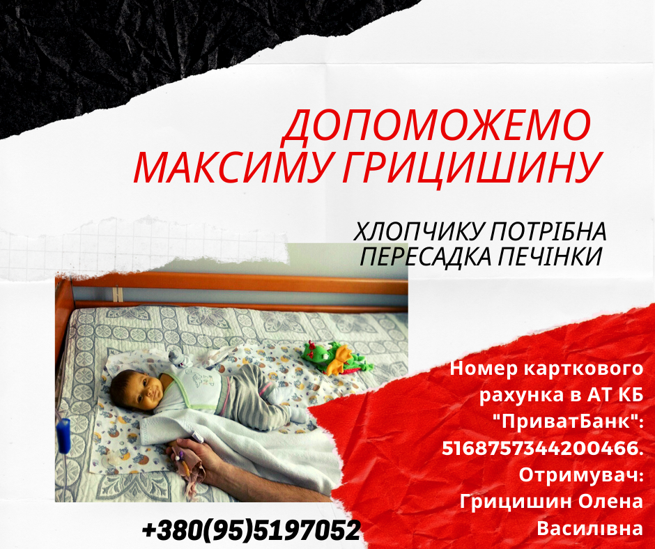 Номер карткового рахунку: ПриватБанк 5168757344200466. (Грицишин Олена Василівна - мама хлопчика). Номер для контактів: 095 5197052.Наразі спільними зусиллями зібрано понад 70 тисяч гривень. Стежити за перебігом збору та лікуванням можна на сторінці у Фейсбуці, як сотворили, аби врятувати малюка.