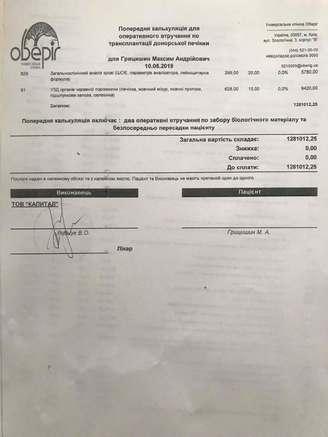 Після обстежень виявили, що батько хлопчика може стати донором для сина. За пересадку готові взятися в клініці «Оберіг». Операція вартує 1 281 012 гривень. На жаль, така сума непідйомна для батьків.Також додатково потрібні будуть кошти й на реабілітацію. Тож, якщо знайдуться люди, готові допомогти, Максим має шанс на життя.Зробити це можна, перерахувавши будь-яку суму батькам, адже навіть маленький внесок наближає їх до мети.