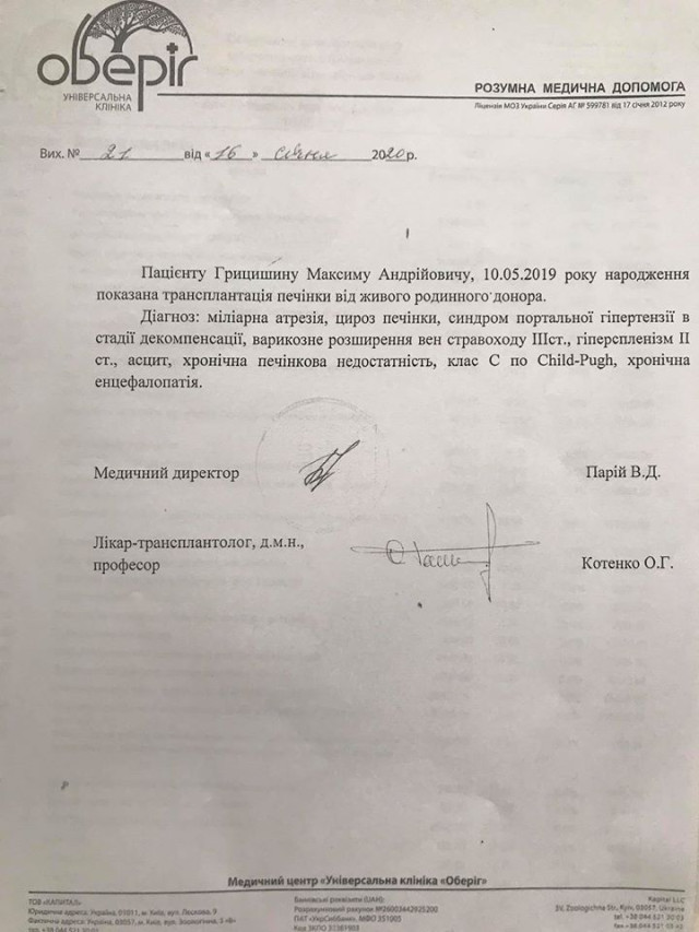 Дитина потребує складної операції з пересадки печінки. На жаль, в Україні не так багато лікарів, які готові взятися за цей випадок.