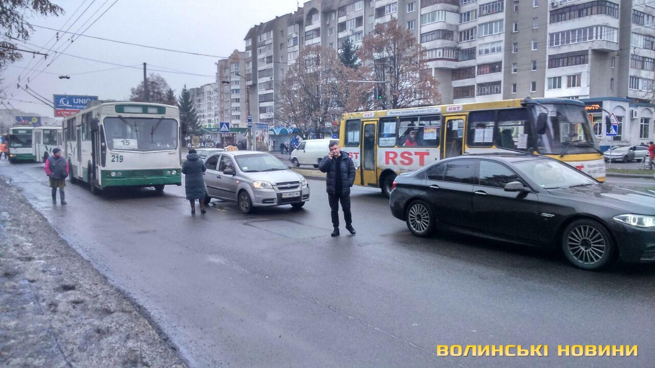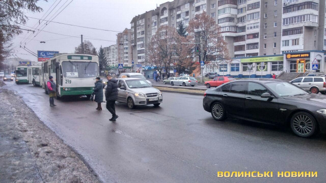 Аварія за участю таксі та тролейбуса трапилася у Луцьку, на проспекті Соборності.