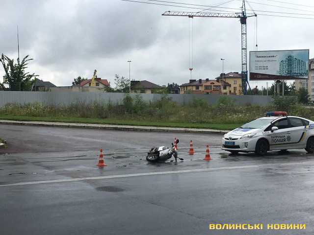Аварія за участю скутериста трапилася сьогодні у Луцьку. На проспекті Відродження, біля завправки WOG, згідно з попередньою інформацією, зіткнулися автомобіль та скутер.