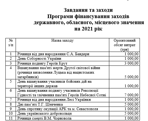 На проведення заходів у Луцьку наступного року витратять 1,5 млн. Перелік