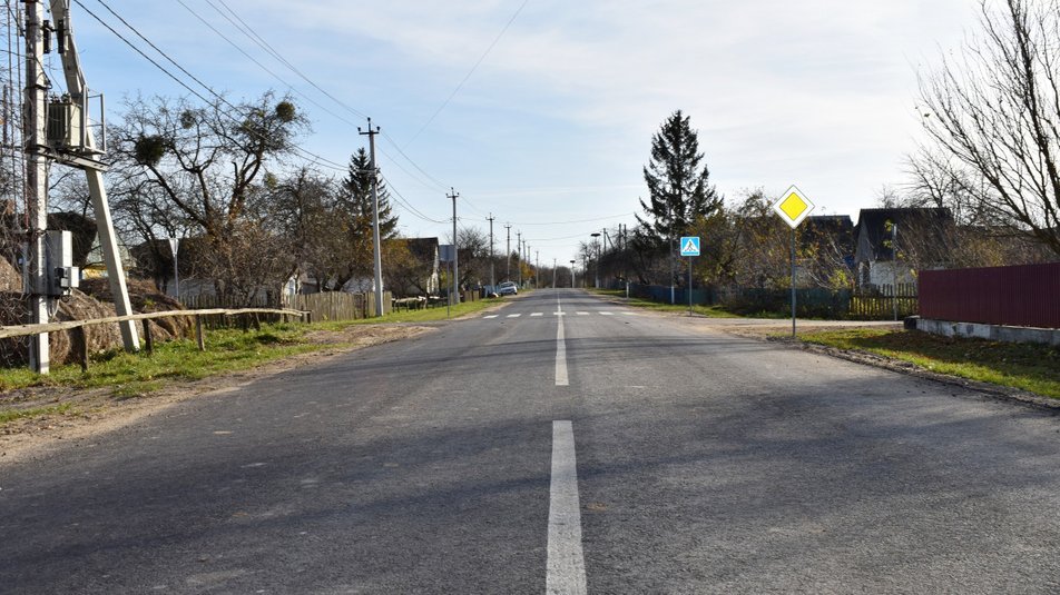 На півторакілометровому відрізку дороги, що проходить через село Білашів, уже вкладено асфальт та влаштовано дорожню розмітку. Окрім того, дорожники розпочали укладати білощебеневе покриття в напрямку села Зелена.