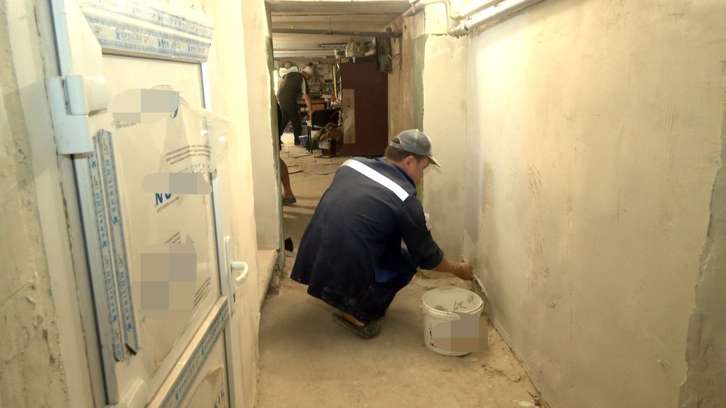Нині у підвальному приміщенні працюють волонтери-майстри Камінь-Каширського вищого професійного училища. Чоловіки зачищають стіни, потім їх мають утеплити пінопластом, обшити плитами та пофарбувати, – говорить робітник Олександр Дмитрук.