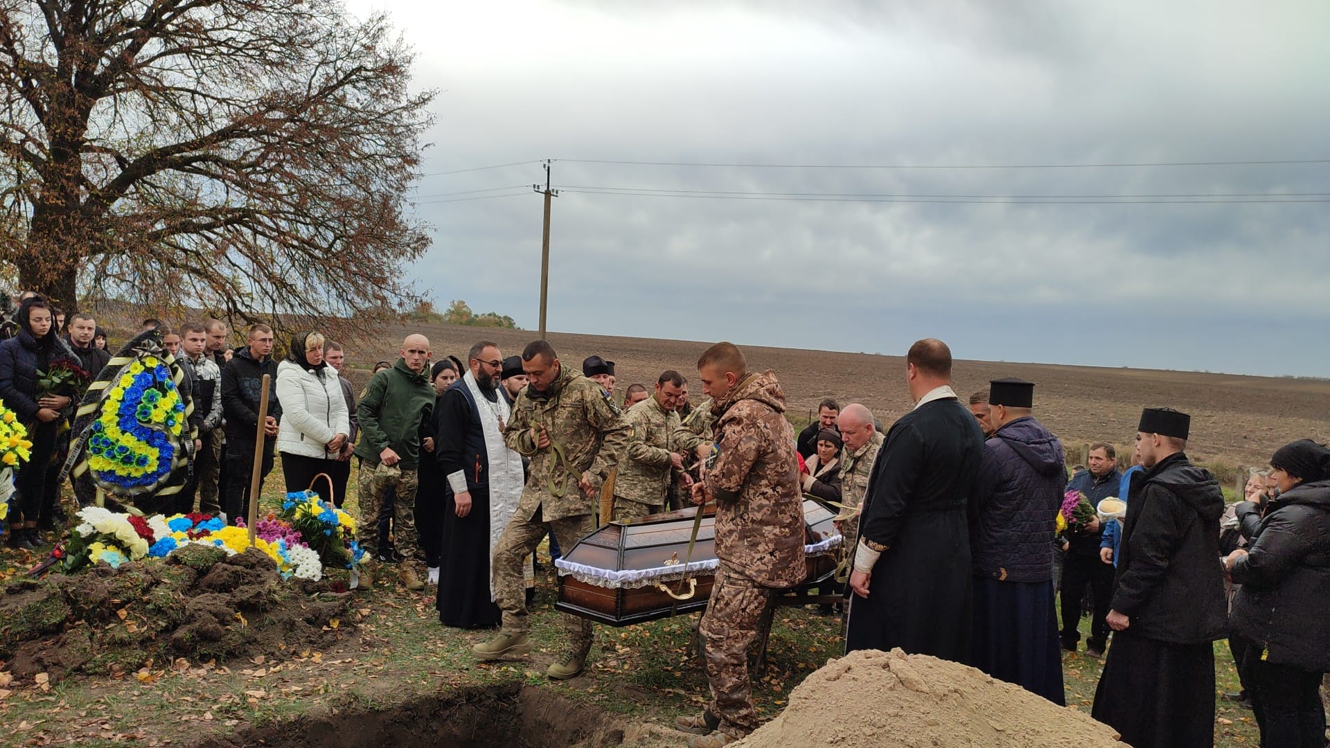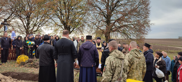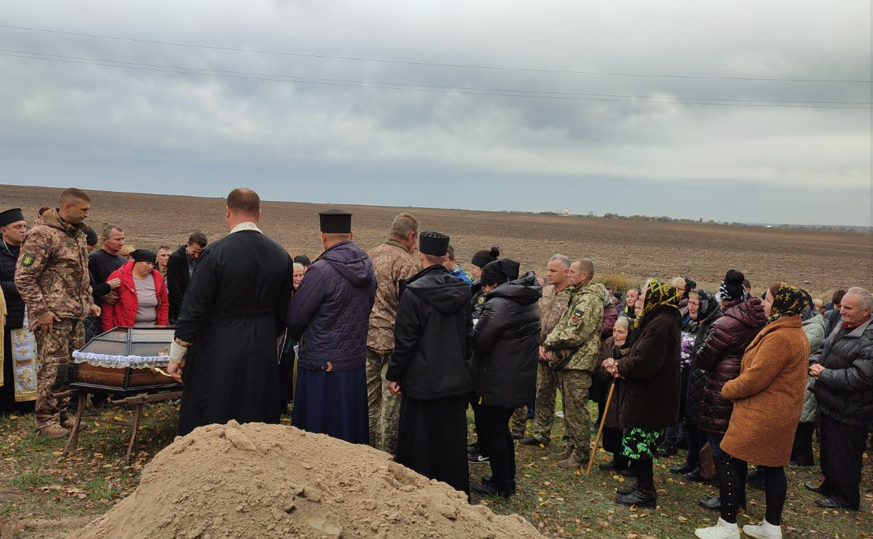 З військовими почестями Віталія поховали на сільському кладовищі. Дружині Ірині передали прапор України, яким була вкрита труна воїна упродовж всього чину похорону.