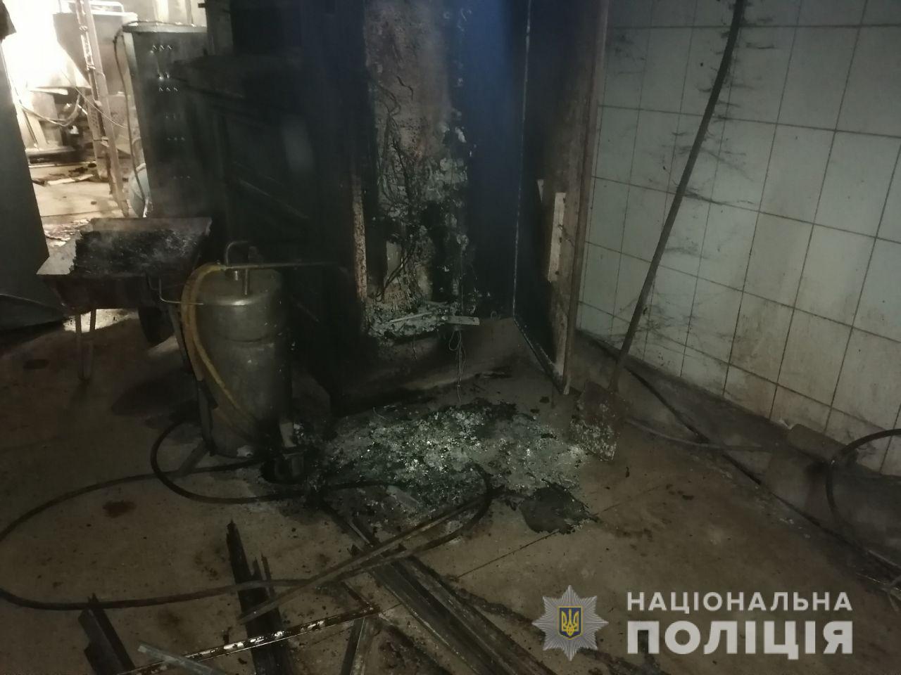 Слідчо-оперативна група встановила, що в нічну пору доби на територію приватного підприємства проникли невідомі особи шляхом злому замка вхідних дверей. У приміщенні непрацюючого м’ясопереробного цеху вони підпалили фасувальний агрегат, термокамеру та вакуумну машину. Після загоряння пожежа самоліквідувалася.