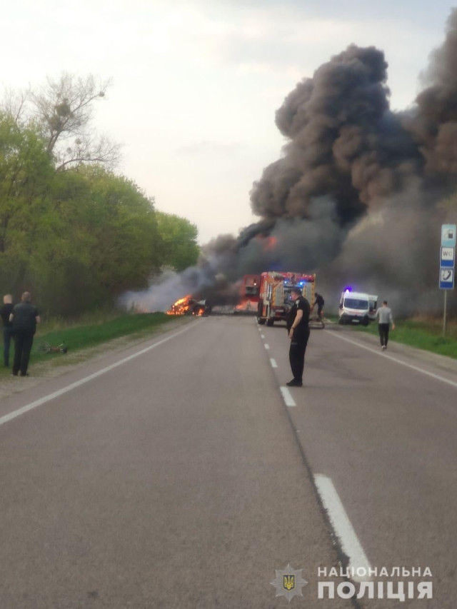 На Рівненщині внаслідок зіткнення автобуса, легковика і бензовоза загинули 17 людей. Фото