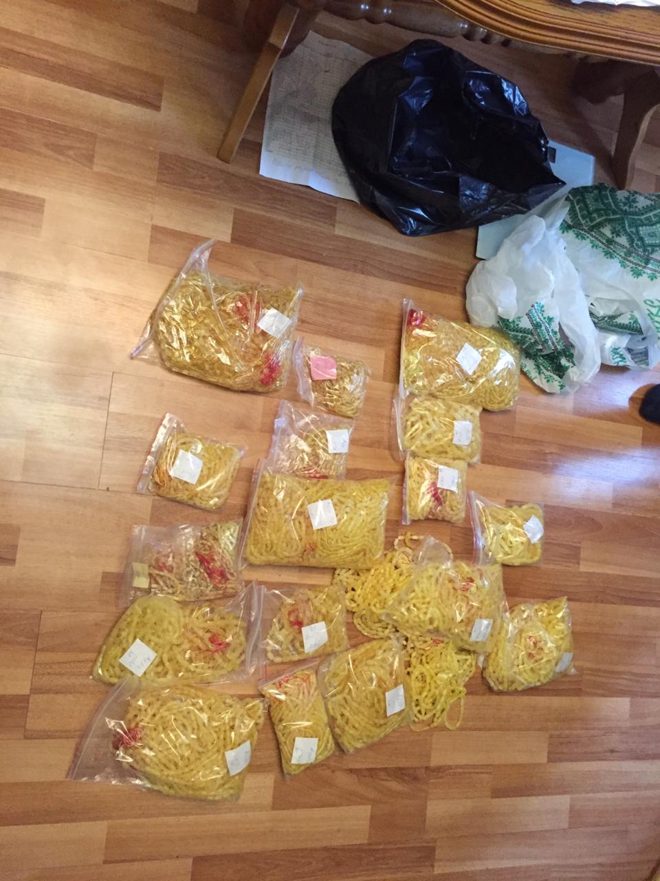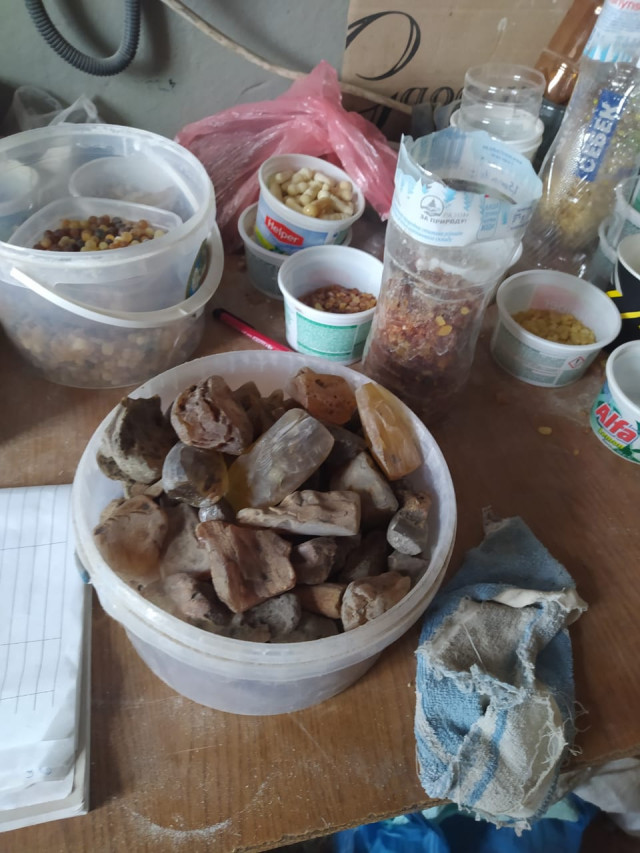 Під час обшуків виявили та вилучили бурштин-сирець та вироби з нього загальною вагою 800 кг. На «чорному ринку» його орієнтовна вартість – близько 4 млн грн. Також вилучили 31 одиницю обладнання для обробки бурштину, комп'ютерну техніку, гроші – 2,3 тис євро та 17 тис грн, чорнову бухгалтерію та первинні документи з ознаками підроблення, які використовували для легалізації походження виробів із незаконно видобутого сонячного каменю.