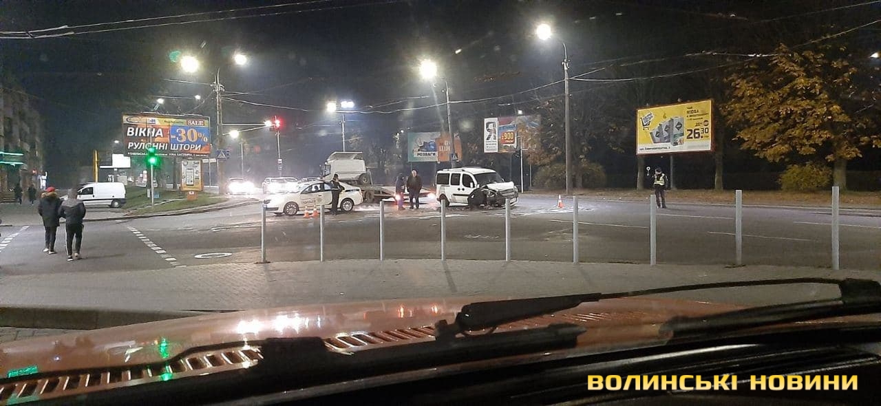 Пізно ввечері 25 листопада у Луцьку на вулиці Рівненській сталася ДТП за участю автомобіля Fiat Doblo та маршрутки.