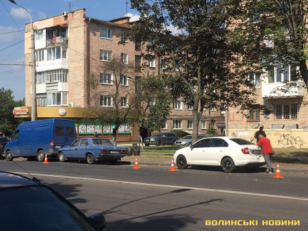 На вулиці Рівненській у Луцьку сталася ДТП за участю автомобілів Мерседес Бенц, Мерседес Спринтер та Шкода.