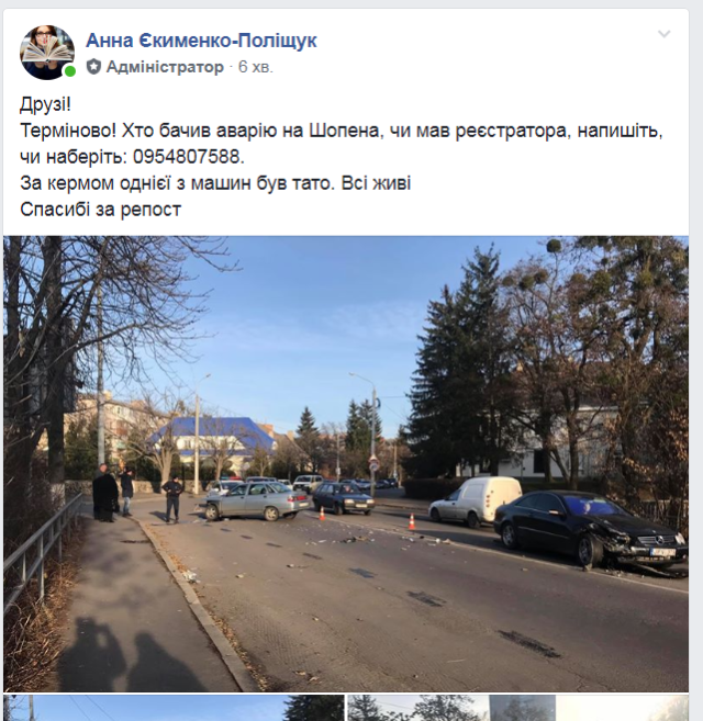 Жінка просить усіх, хто бачив аварію чи мав реєстратора, зателефонувати за номером 0954807588.