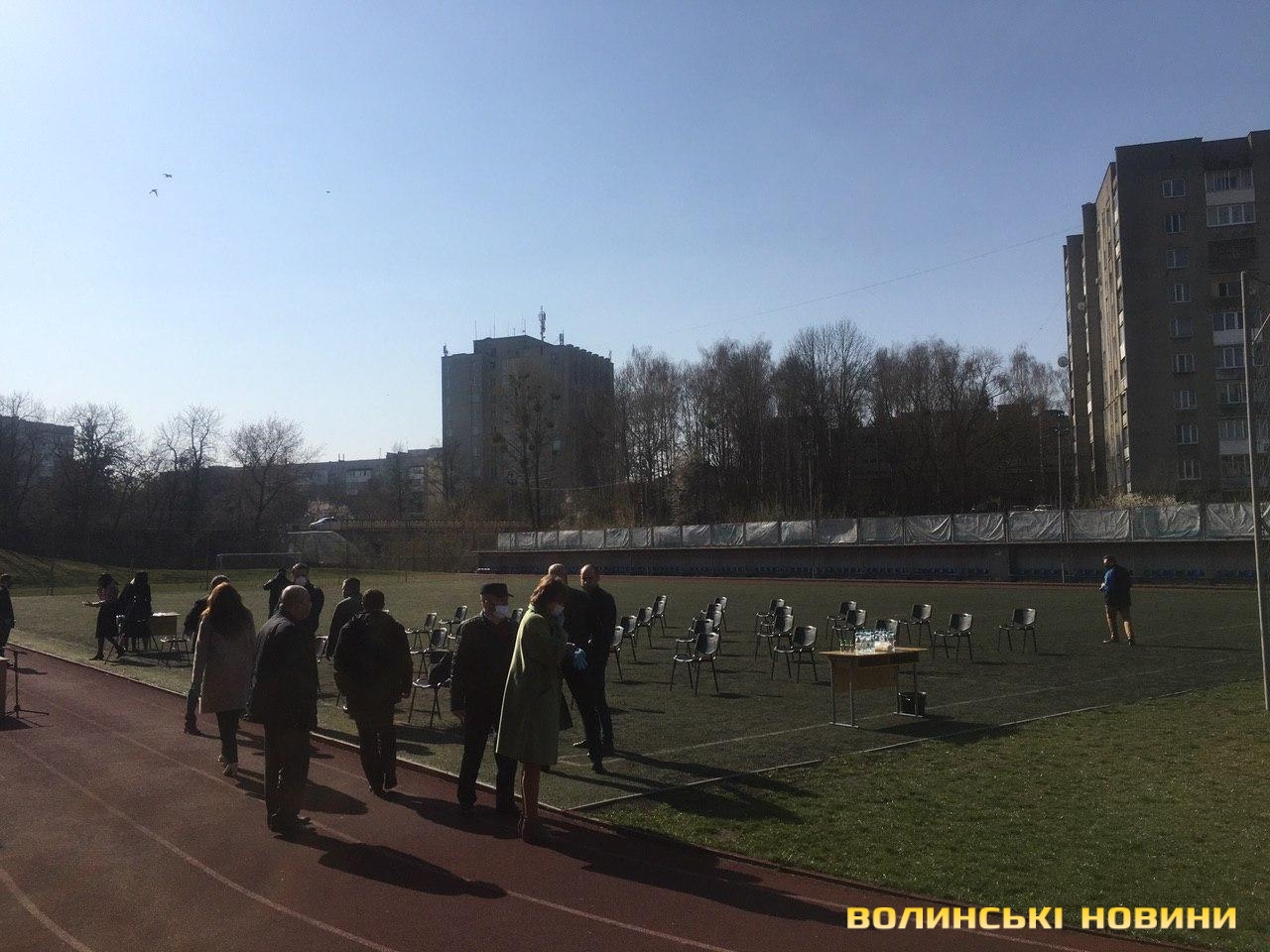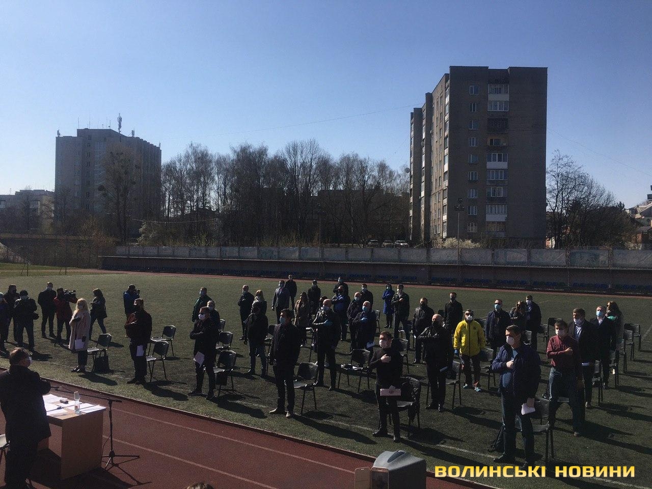 В обласному центрі Волині через карантинні заходи вперше сесію Луцької міської ради проводять на стадіоні, а не в залі засідань.