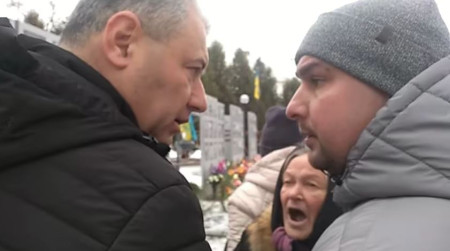 Мер начебто цьому перешкоджав, і «навіть штовхнув матір загиблого захисника».Читати ще: Журналіст Бутусов і нардеп Шуфрич побилися в прямому ефірі. Відео