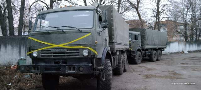 «Близько 100 танків, гради та бензовози. Ми вгатили по стоянці техніки орків! Сумщина, Лебединський район. Цивільних не було. Слава всім причетним!» – написав посадовець та додав відео з місця події.На Чернігівщині, як повідомили на сторінці оперативного командування «Північ» 28 лютого українські військові захопили в окупантів 4 КамАЗи з боєкомплектами.
