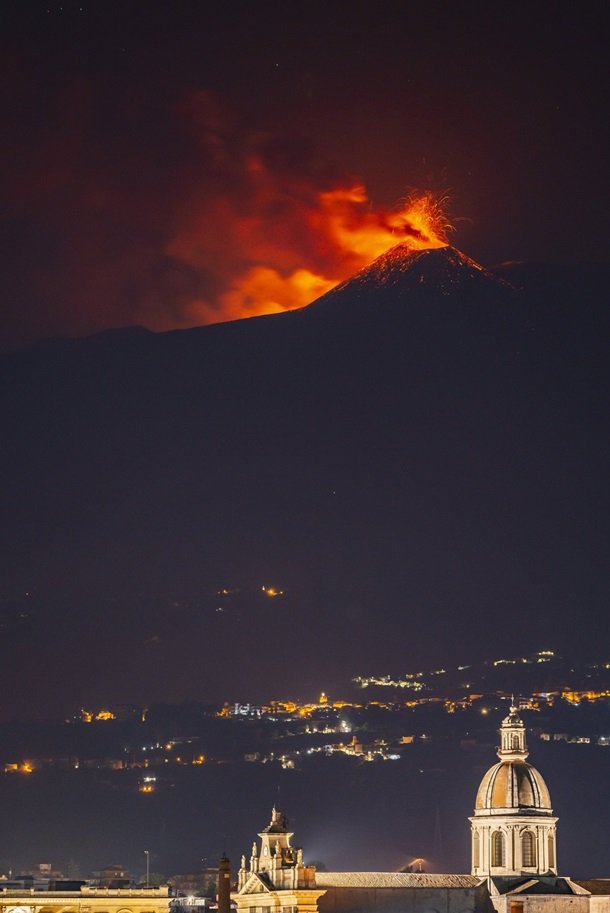 Найактивніший вулкан Європи Етна на італійському острові Сицилія кілька днів поспіль демонструє свою міць. Під час останнього виверження він викинув у небо стовп попелу, заввишки близько п’яти кілометрів.