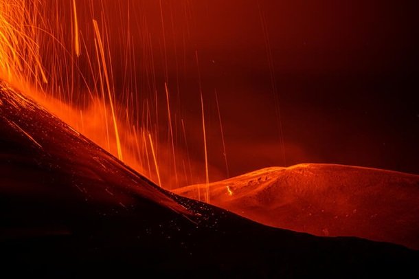 Наразі він затих, однак існує ймовірність нового виверження в п’ятницю, 9 липня.У мережі з’явилися захоплюючі відео Етни, що викидає лаву, в тому числі, з висоти пташиного польоту. Активність вулкана фіксують з 2 липня.