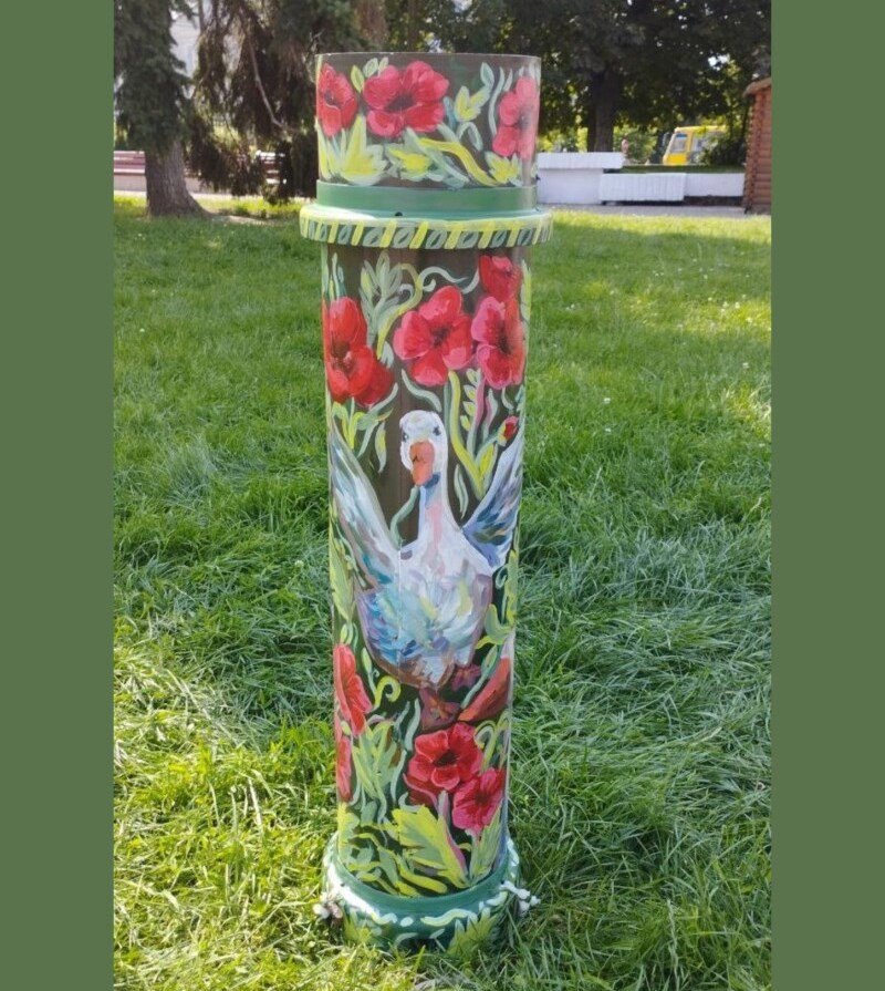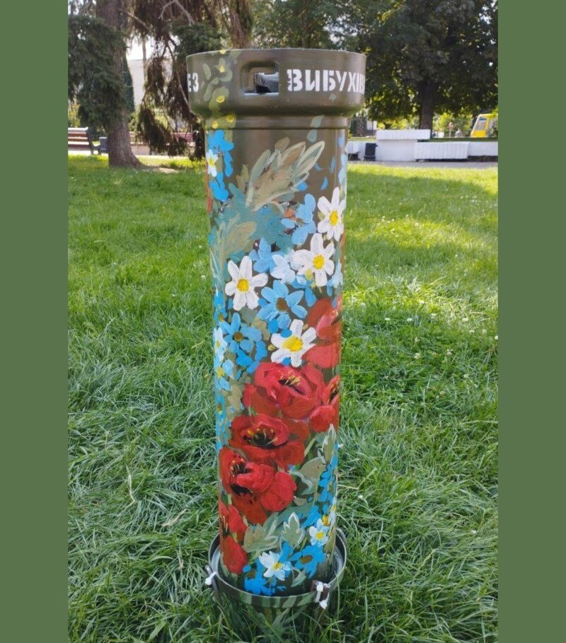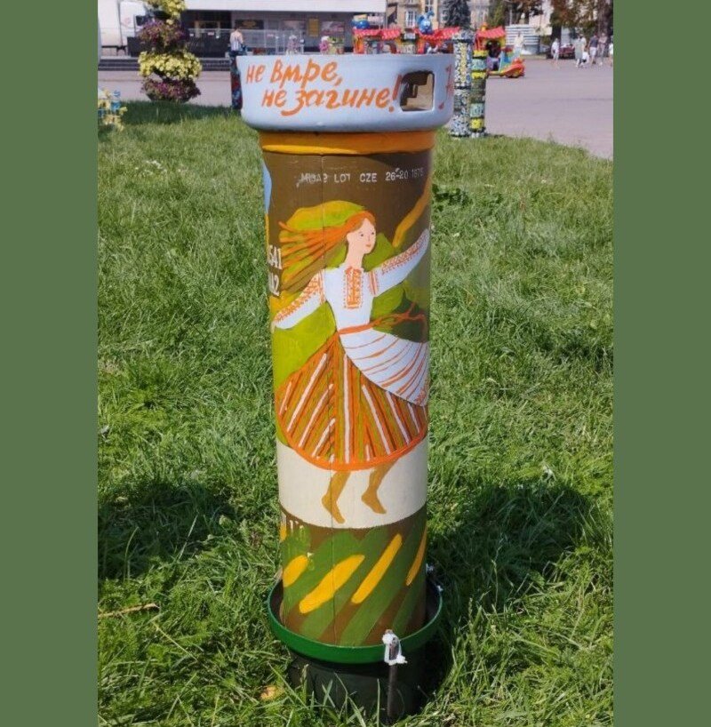 На Театральному майдані Луцька встановили артінсталяцію «НЕЗЛАМНІСТЬ». Це розмальовані 18 тубусів з використаного військового спорядження.