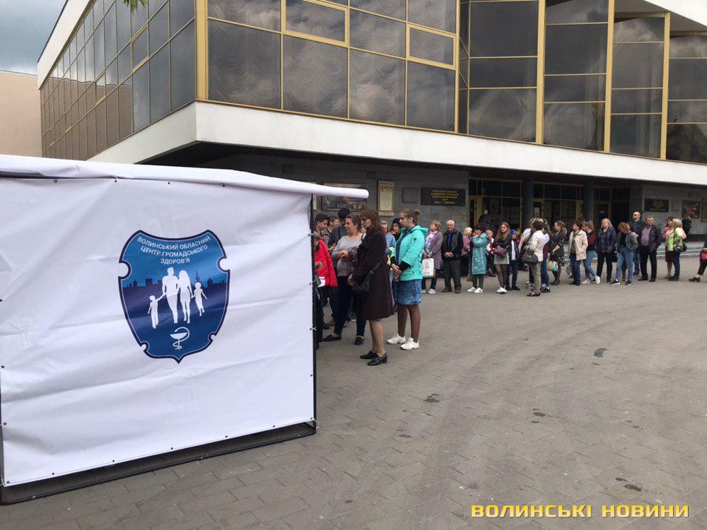 У центрі Луцька утворилася чимала черга з охочих безкоштовно обстежити родимки.