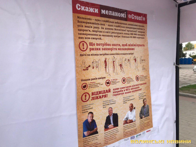 Традиційну акцію до Дня боротьби з меланомою «Обстеж родимки – збережи життя!» організував Волинський обласний центр здоров’я на Театральному майдані 10 травня.