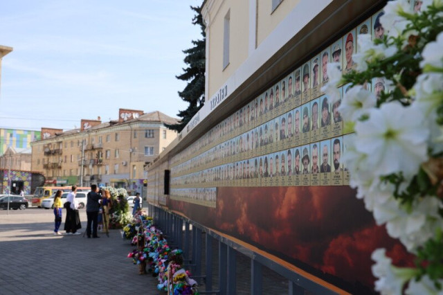 На Театральному майдані в Луцьку оновили фотостенд Героїв