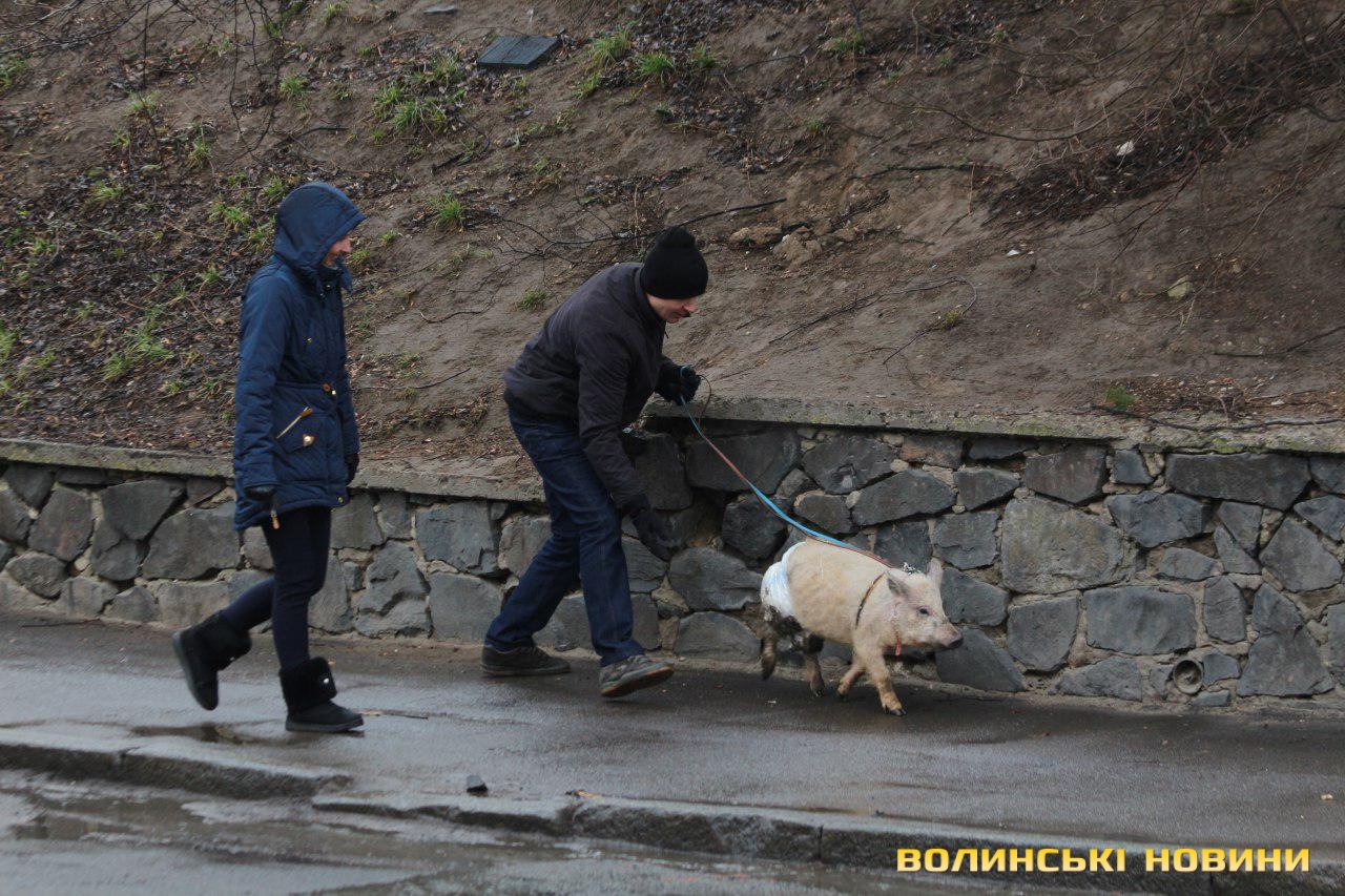 До слова, власника свині затримали поліцейські, які провели з ним роз’яснювальну бесіду.Раніше сьогодні інший волинянин привіз на Театральний майдан порося. Чоловік розповів, що це – «малий Свинарчук» і він його хоче подарувати президенту.