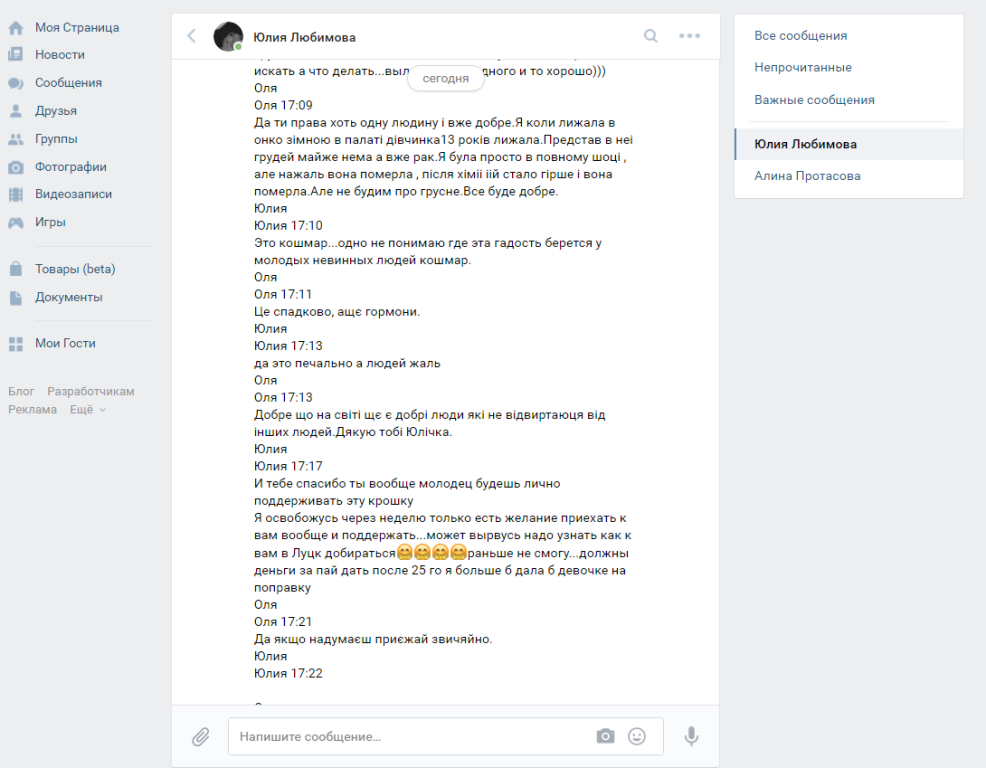 Більше того, Ольга у своїх постах не врахувала той факт, що діти до 18 років не можуть лежати в онкодиспансері, адже до досягнення 18-річного віку вони лікуються в дитячій лікарні. А дівчині, якій нібито потрібні кошти, вказує авторка неправдивого повідомлення, 17 років.