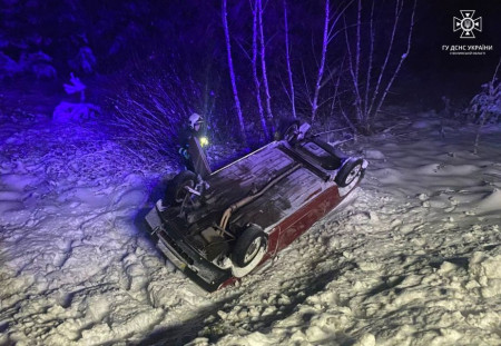Працівники ДСНС, які прибули на місце події, встановили автомобіль на колеса й відбуксирували його з кювету на стійку ділянку автодороги.