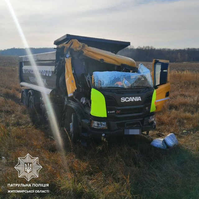 На місце події патрульні викликали слідчих, водія вантажівки ушпиталили.
