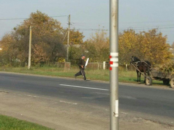 На щастя, матеріал, який погубила автівка був легким, та не призвів до ніяких серйозних наслідків.