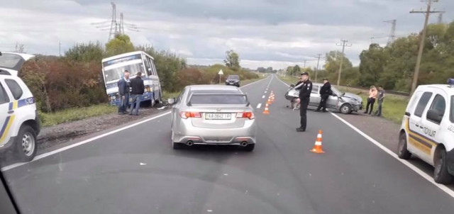Маршрутка не розминулася з легковим автомобілем. Це сталося на автодорозі Луцьк-Львів поблизу села Новий Став Кам'янко-Бузького району Львівської області.