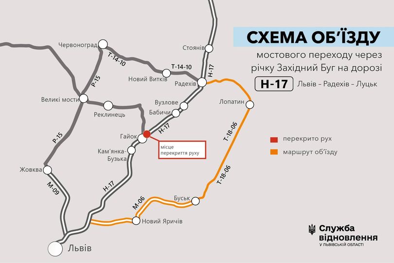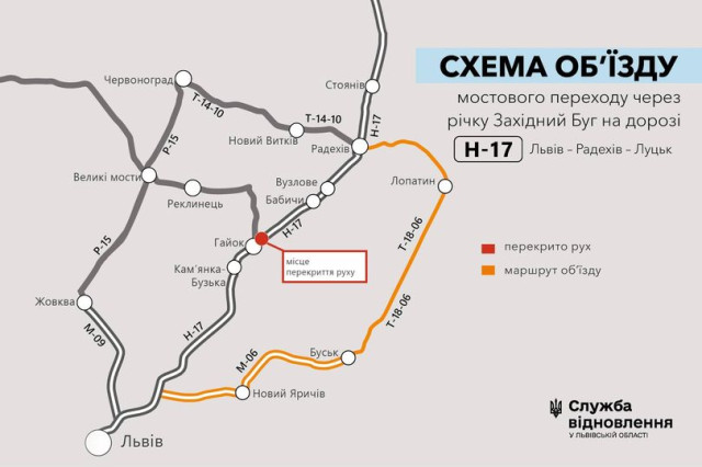 Із 17 липня знову перекрили рух автомобільного транспорту через мостовий перехід через річку Західний Буг поблизу с. Гайок на дорозі Н-17 Львів – Радехів – Луцьк.