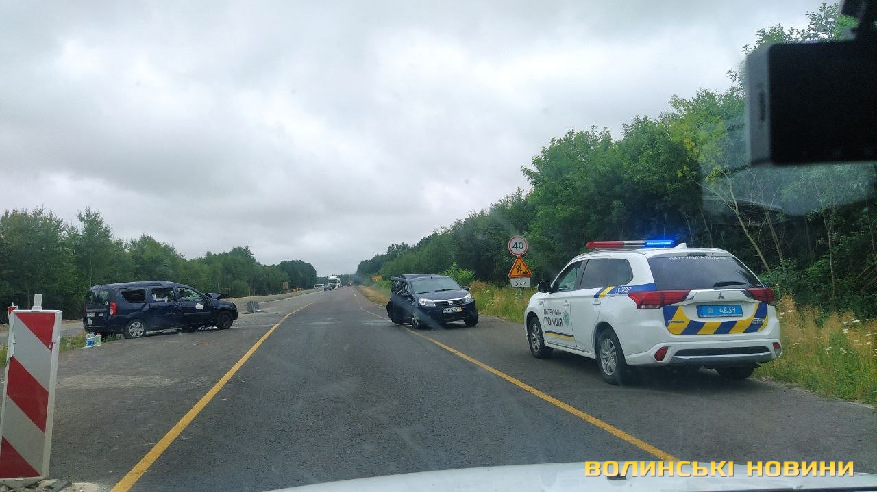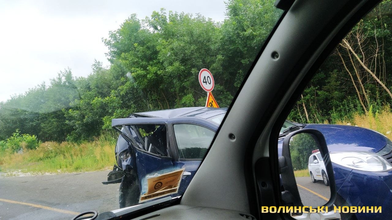 Як повідомили у пресслужбі Патрульної поліції Волинської області, Dacia Logan не дотримався безпечної дистанції та не обрав безпечної швидкості, внаслідок чого здійснив зіткнення з автомобілем Dacia Sandero, який, своєю чергою, рухався заднім ходом. Також останній автомобіль пошкодив дорожній знак «Об’їзд перешкоди». На щастя, в аварії немає травмованих.