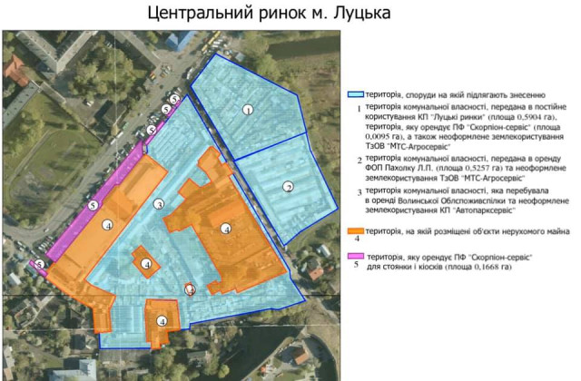 Щодо колишньої ділянки Волинської облспоживспілки (2,2 Га), ділянок КП «Луцькі ринки» (0,5904 Га), ФОП Пахолко Л.П (0,5257 Га) та неоформлених ділянок - металеві конструкції, що розміщені на вказаних ділянках підлягають демонтажу", - йдеться у дописі.