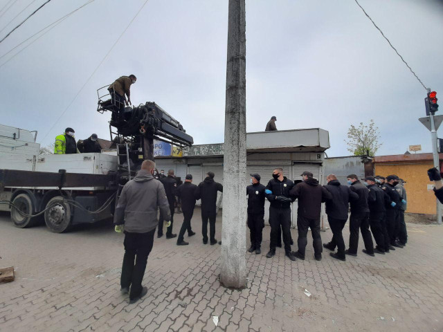 На Центральному ринку розпочали демонтаж кіосків, які не мають діючого права розміщення на даній ділянці. Йдеться, зокрема, про 9 конструкцій, які знаходяться безпосередньо перед ринком.