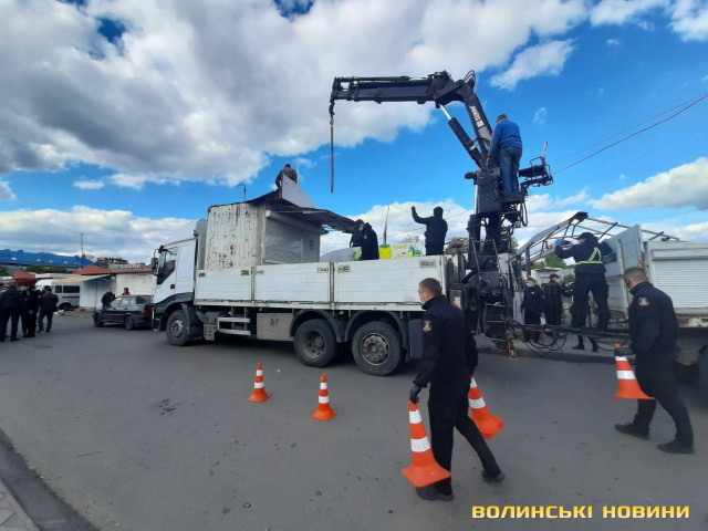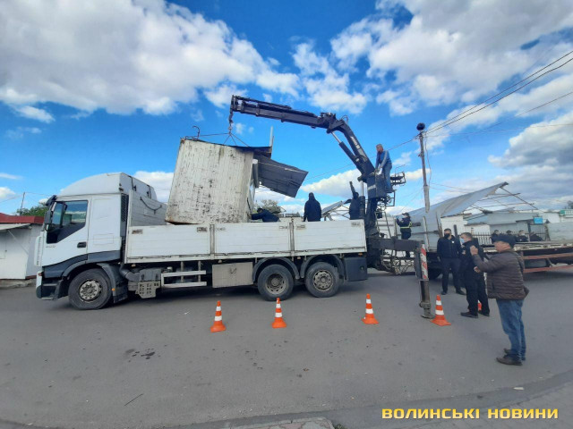 На території Центрального ринку міста Луцька розпочали демонтаж трьох тимчасових споруд. Дозвіл на демонтаж дав виконавчий комітет міськради під час позачергового засідання 20 травня.
