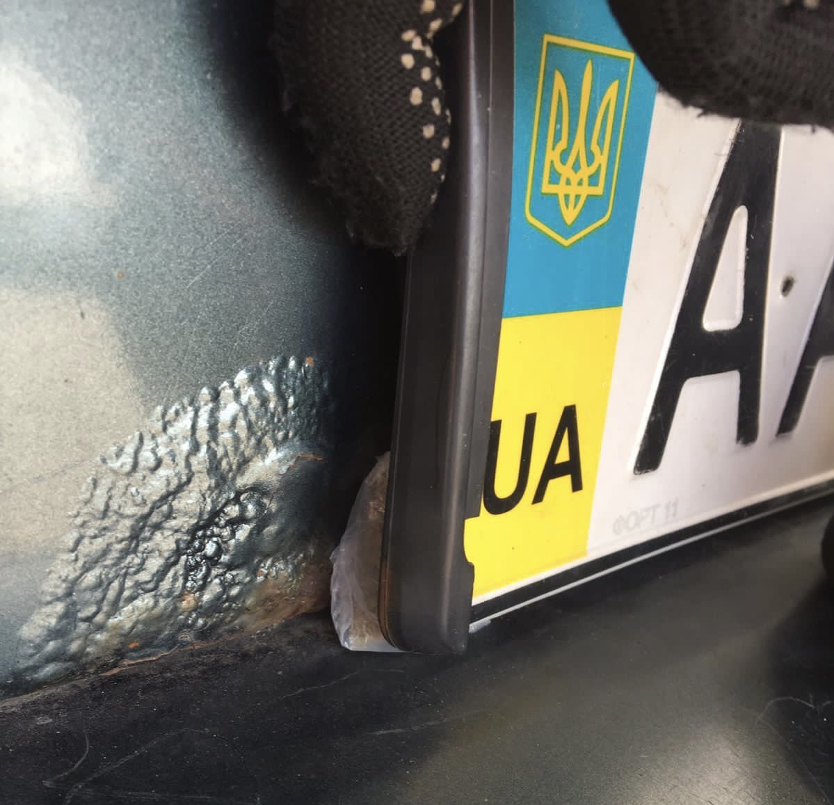 Маленький поліетиленовий зіп-пакетик, де містилося всього лиш 2,8 грама забороненої до транскордонного переміщення речовини, чоловік сховав під номерним знаком свого авто.