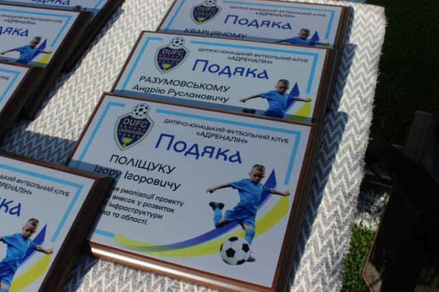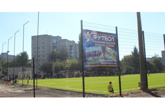 Футбольне поле зі штучним покриттям, розмір – 45 на 65 метрів, розташоване у дворі на проспекті Соборності, 3. Спортивний об’єкт облаштувала громадська організація «Футбольний клуб «Адреналін». Вихованці цього футбольного клубу зможуть грати на сучасному, комфортному та безпечному полі.