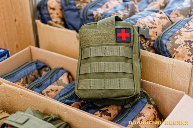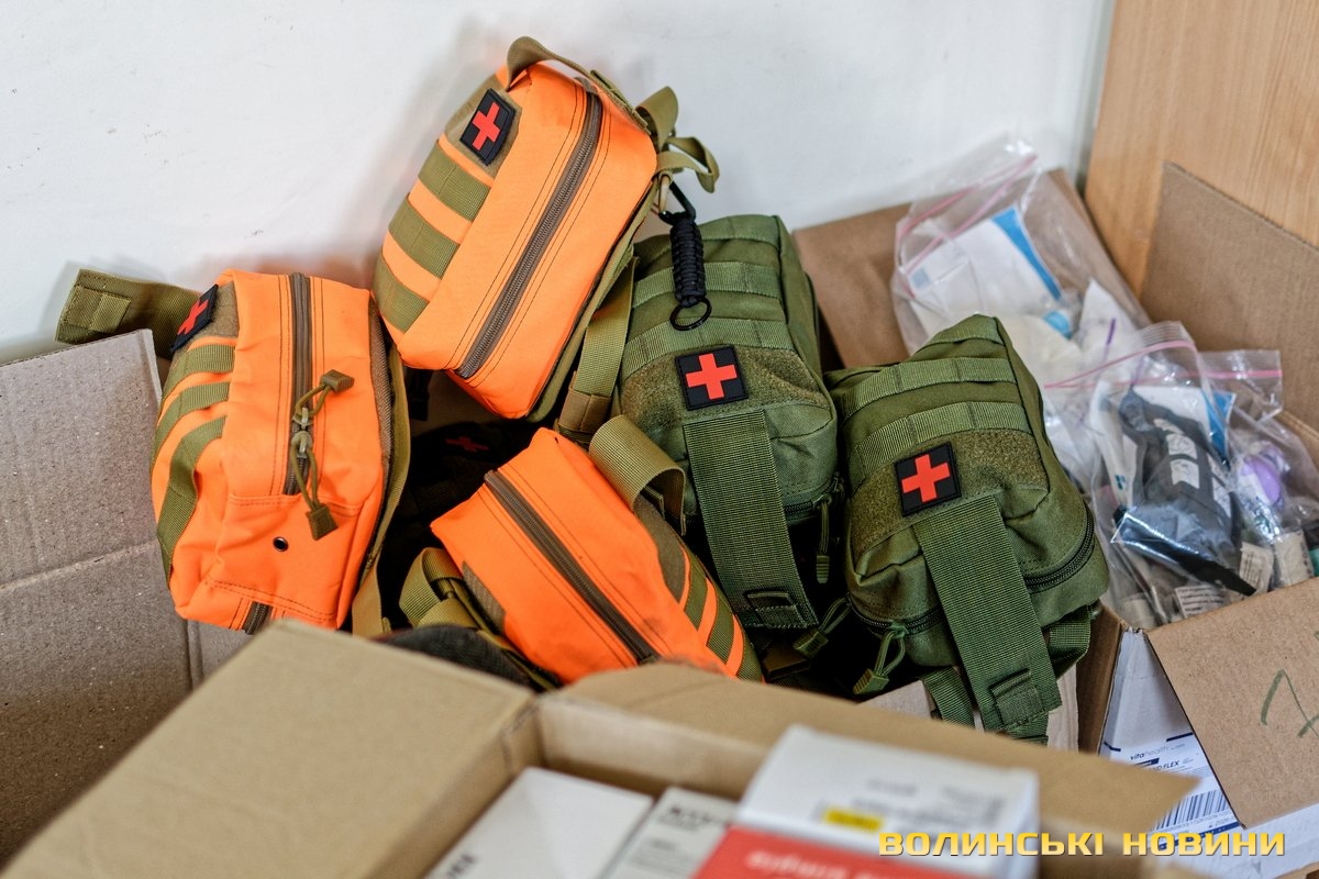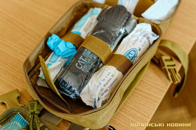 «Наша аптечка адаптована до нинішніх стандартів і до тих можливостей, які у нас є. В аптечці обов’язково має бути турнікет, без нього ніяк. Неодмінно мають бути бинти, бандажі, перев’язувальний матеріал, певні медикаменти. Вкладаємо набір препаратів, які слід одноразово прийняти у випадку поранення, а також знеболювальні й протизапальні. В аптечці є пластирі, ножиці, ендотрахіальна трубка, дезрозчин для обробки рук. Тобто все те, що може знадобитися під час надання домедичної допомоги на полі бою».Спілкуючись із захисниками, волонтери із Волинського медінституту зрозуміли, що до формування аптечок почасти слід застосовувати індивідуальний підхід. Тому нерідко відходять від стандартів і вкладають те, про що просять військові.