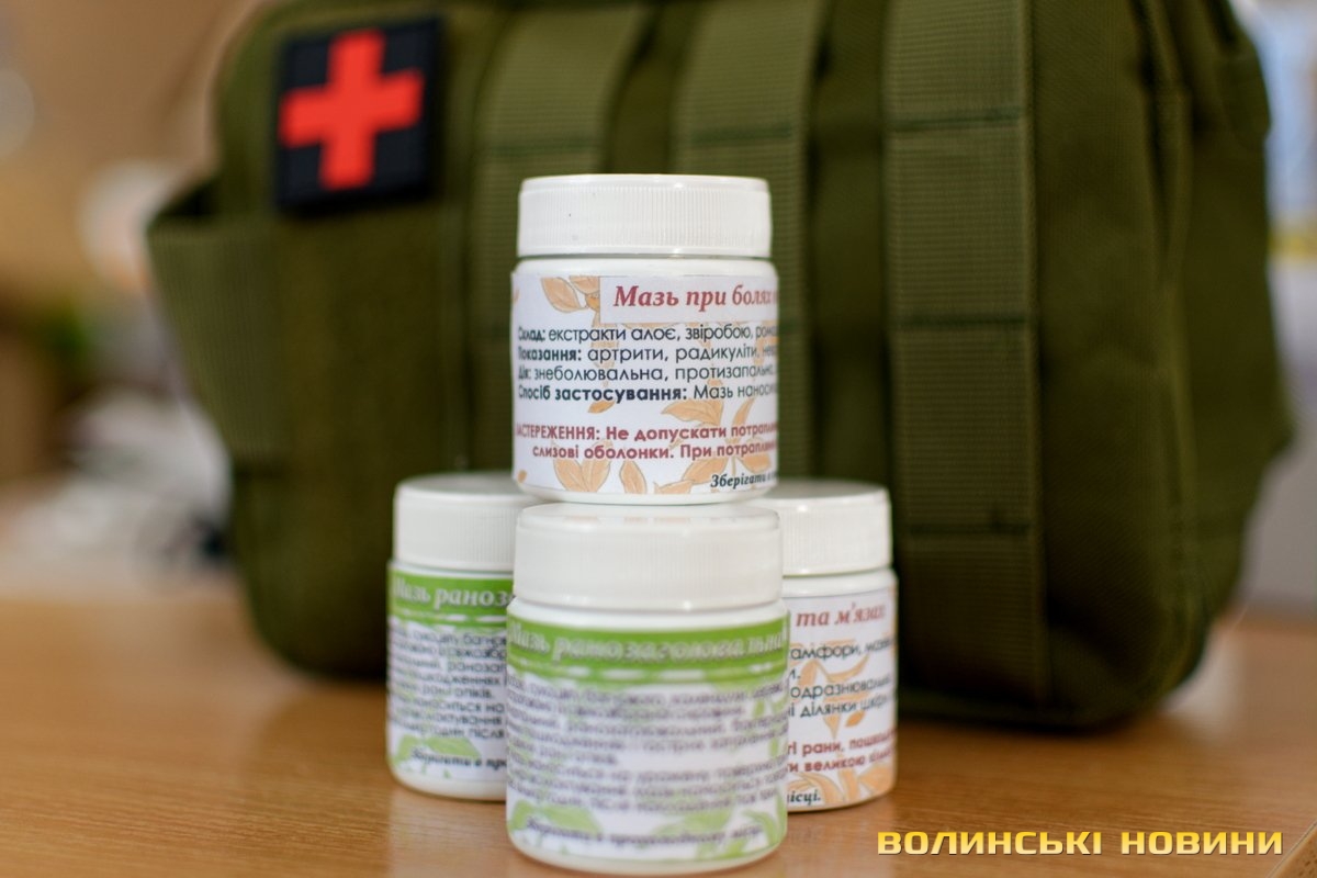«Ніде правди діти: на ринку трапляються турнікети різної якості. Коли ми отримуємо партію турнікетів, то намагаємося їх перевірити, їдемо в обласну лікарню і за допомогою УЗД-апарата тестуємо їх безпосередньо на лікарях. Був випадок, коли надійшли непридатні для використання турнікети, – додає Тетяна Пастрик. – Дуже вболіваємо за те, аби наші воїни отримали все найкраще. Аби кожна річ із цієї аптечки на всі сто виконала свою функцію».Крім того, у Волинському медичному інституті, де однією з провідних спеціальностей є промислова фармація, виготовляють унікальні помічні мазі – ранозагоювальні та при болях у суглобах і м’язах. Авторську рецептуру розробила фаховий фармацевт і викладач інституту Лариса Радько, спираючись на знання своєї бабусі. Ефективність засобу підтверджена ще з 2014 року й за вісім років війни на передову відправили понад 300 кілограмів цієї ранозагоювальної мазі. Вона помічна при порізах, подряпинах, опіках, укусах, ранах, пересиханнях та найрізноманітніших подразненнях.«Закінчиться війна і ми неодмінно осучаснимо дизайн, аби ці мазі були не лише дієвими, а й естетичними зовні, – зауважує Тетяна Пастрик. – У мене взагалі є така гарна мрія – відкрити студентську аптеку. Все це реально, однак нині всі зусилля – задля перемоги».