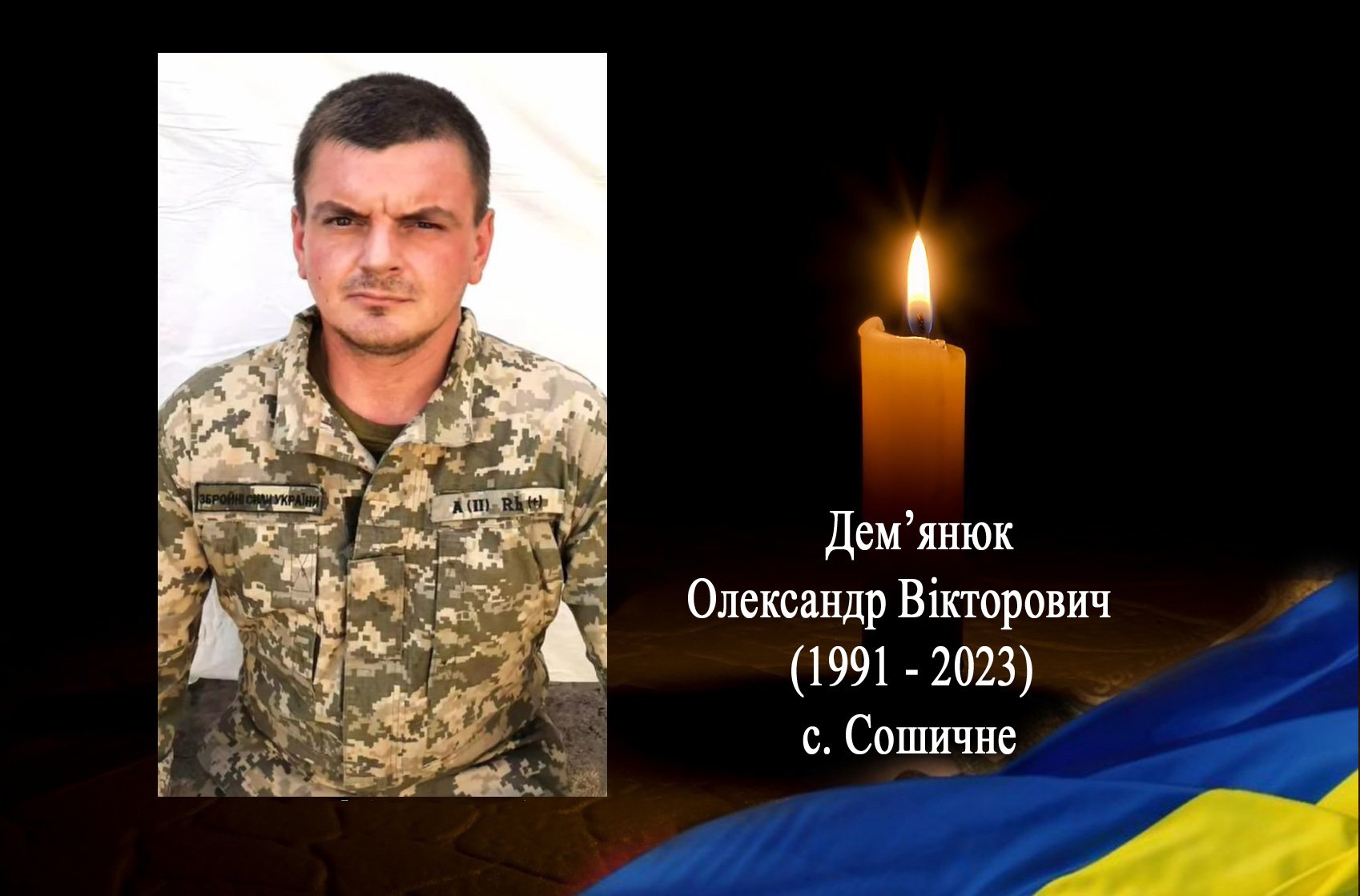 Страшна війна без жалю забрала життя ще одного волинського захисника, мужнього бійця, жителя села Сошичне Камінь-Каширського району 32-річного Олександра Дем’янюка. Життя молодого бійця обірвалося на Куп’янському напрямку.