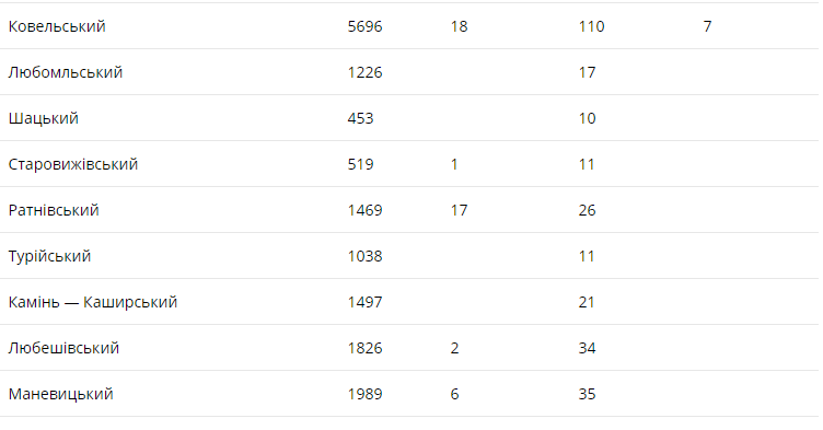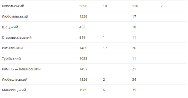 В тексті пише що є хворі, а в таблиці - нуль. Це стосується Турійського району.