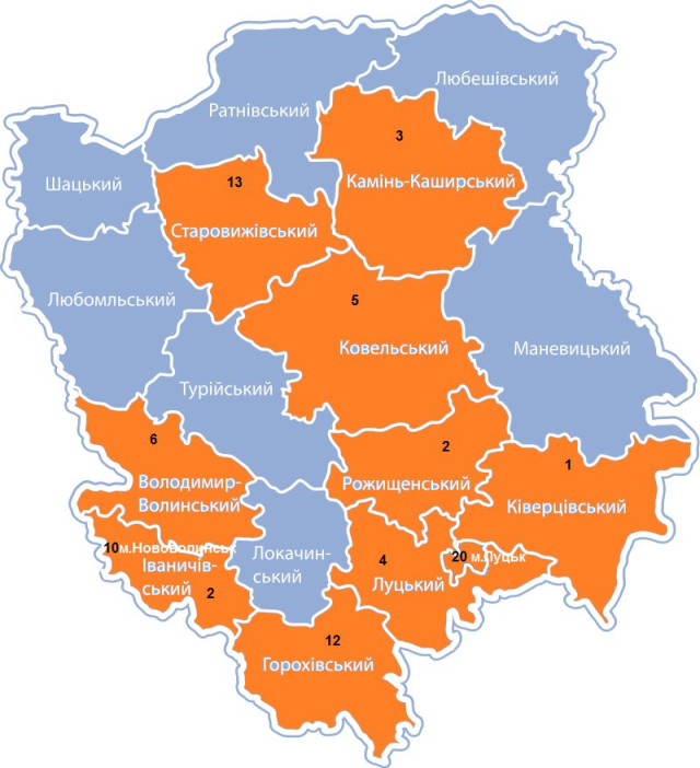 – Ковельський – 5 випадків (в т.ч. в місті Ковель – 4 випадки);