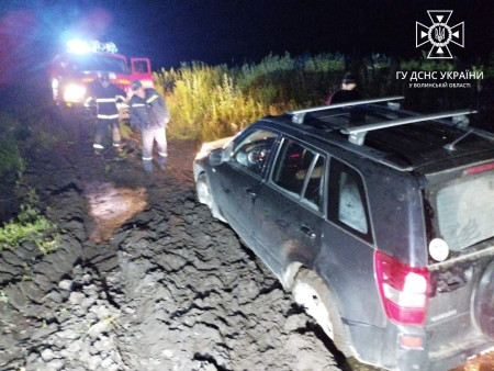 На Волині авто з вагітною жінкою та дітьми застрягло у болоті