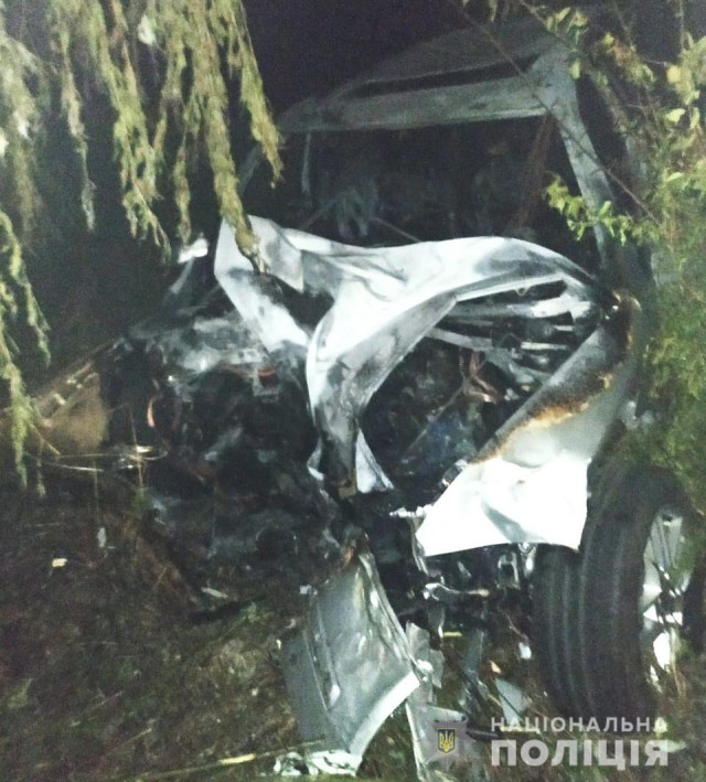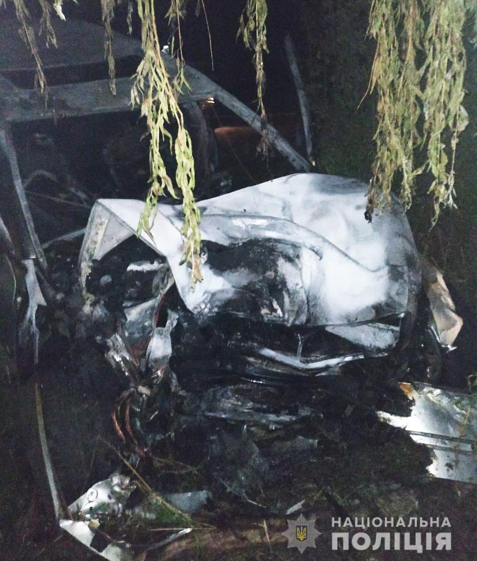 Водій, керуючи легковиком Skoda, злетів з дороги та врізався у дерево. Внаслідок ДТП транспортний засіб загорівся і майже вщент згорів разом з водієм та документами.